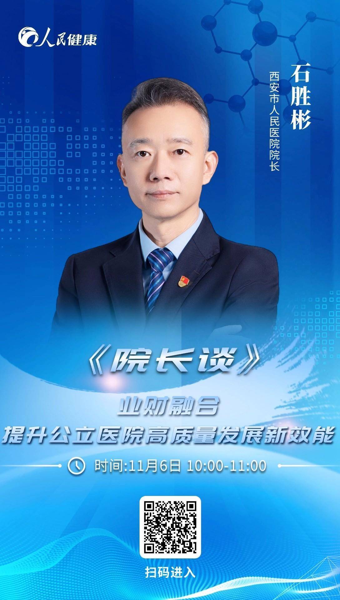 11月6日10:00-11:00,西安市人民医院院长石胜彬将做客演播室,就“业财融合,提升公立医院高质量发展新效能”话题与网友在线交流。