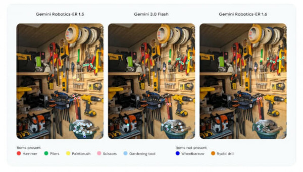 据CNMO了解,Gemini Robotics-ER 1.6在未使用特定优化前,其仪表读取成功率为86%,而在应用“智能体视觉”(Agentic Vision)技术后,成功率进一步提升至93%。作为对比,前代模型ER 1.5的成功率仅为23%,而通用模型Gemini 3.0 Flash的成功率为67%。