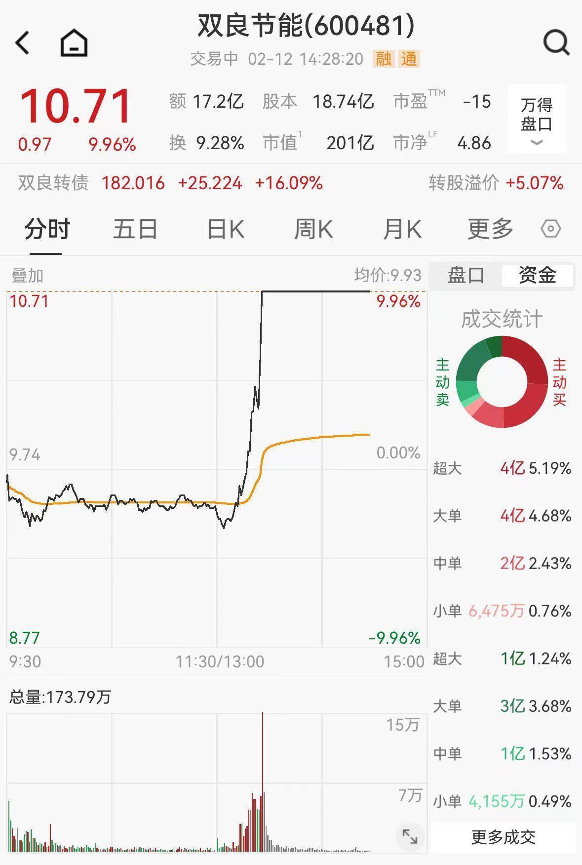 2月12日午后股票配资论,A股光伏企业双良节能(600481.SH)盘中股价10分钟左右直线涨停,报10.71元/股,总市值为201亿元。