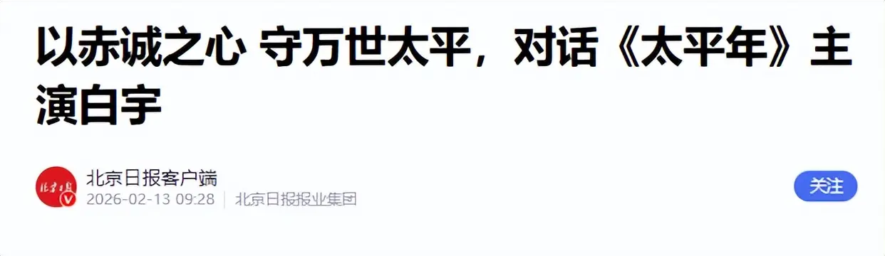 北京日报客户端,2026-02-13, 以赤诚之心 守万世太平,对话《太平年》主演白宇