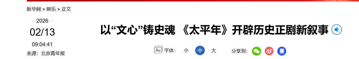 新华网,2026-02-13中国十大正规炒股平台,以文心铸史魂 《太平年》开辟历史正剧新叙事